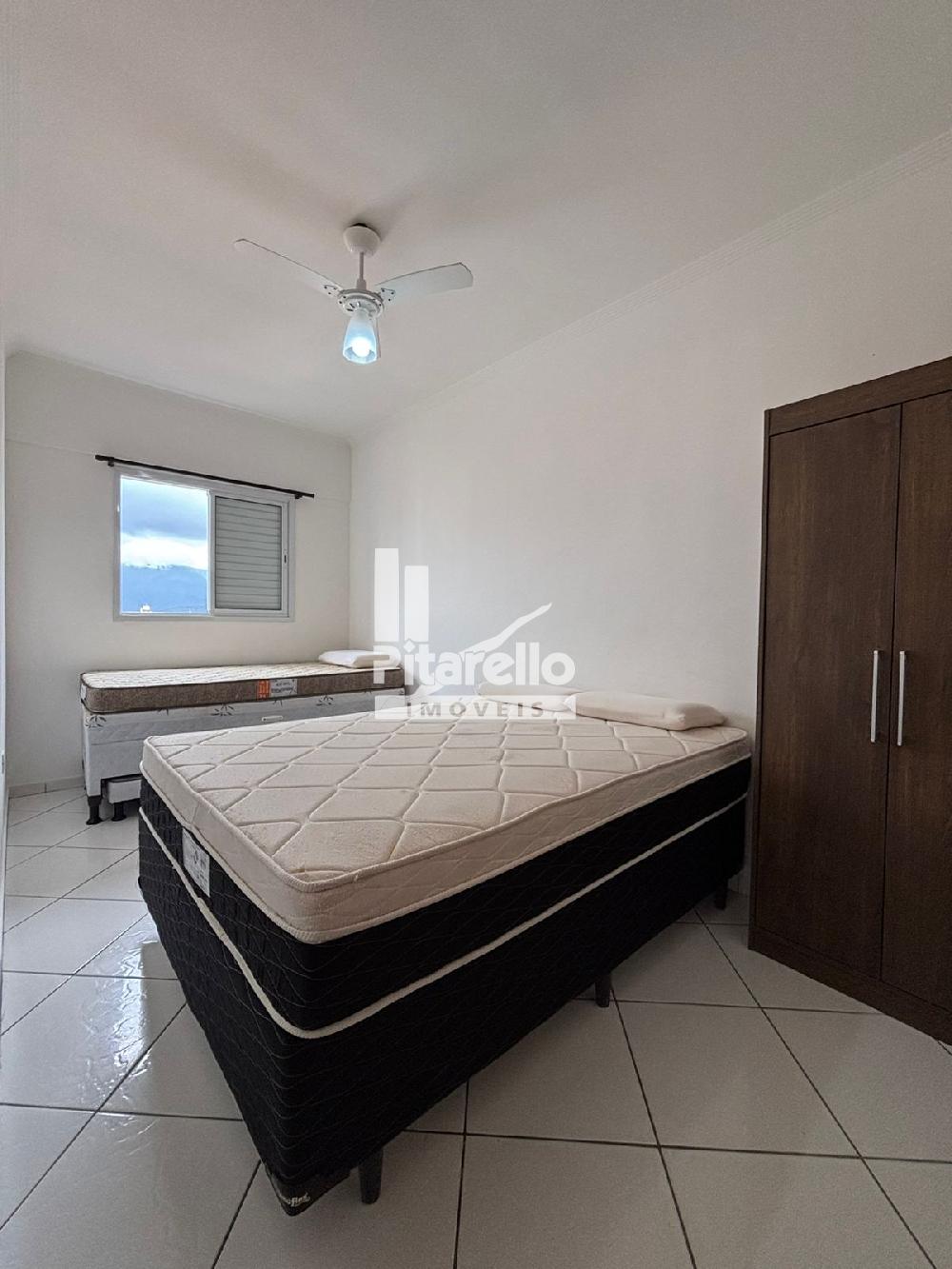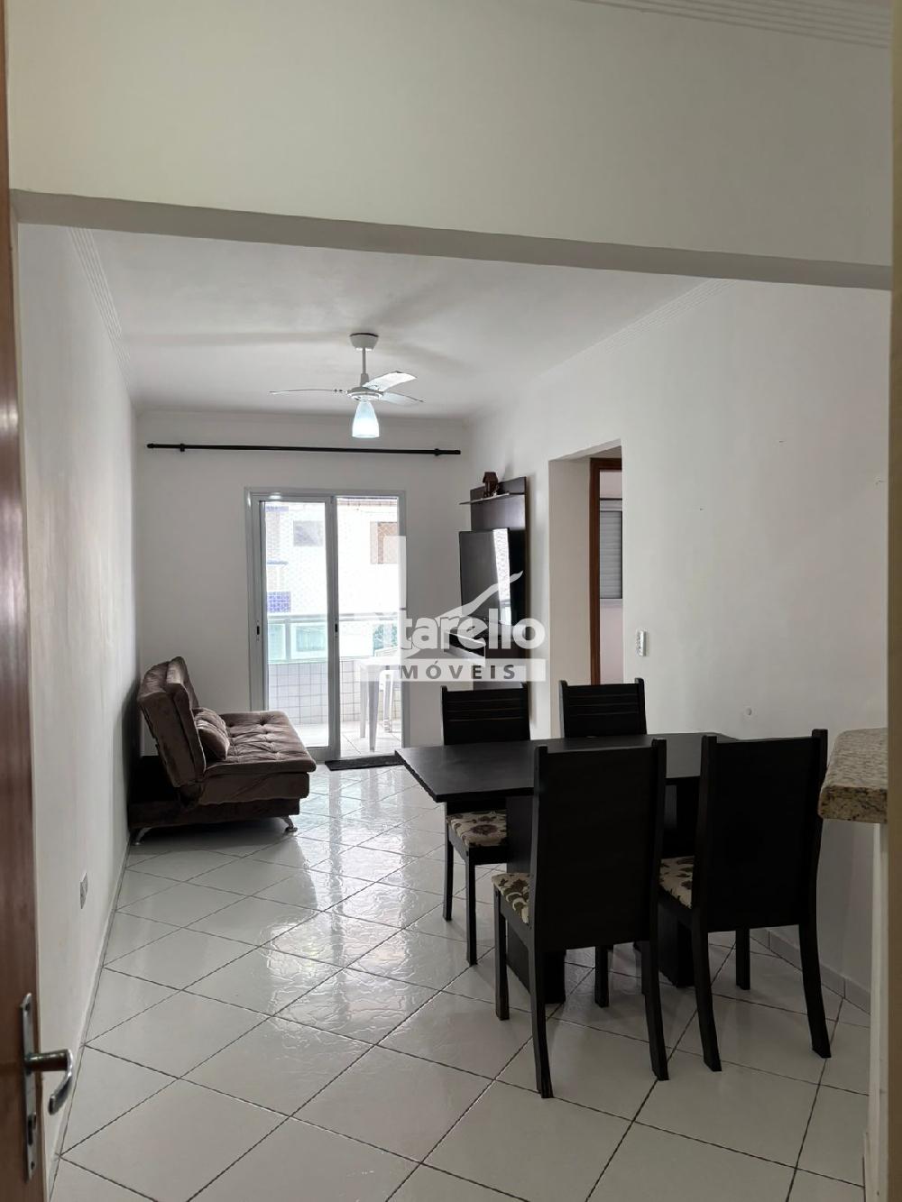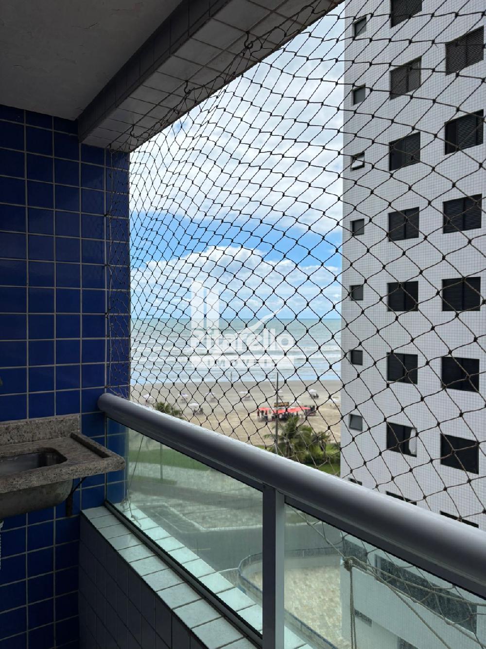 Apartamento na Praia Grande - SP na Vila Caiçara: bem localizado e confortável, com 2 quartos (um suíte), ventiladores nos tetos, cozinha, sala com TV ampla, área gourmet com vista para o mar e estacionamento.