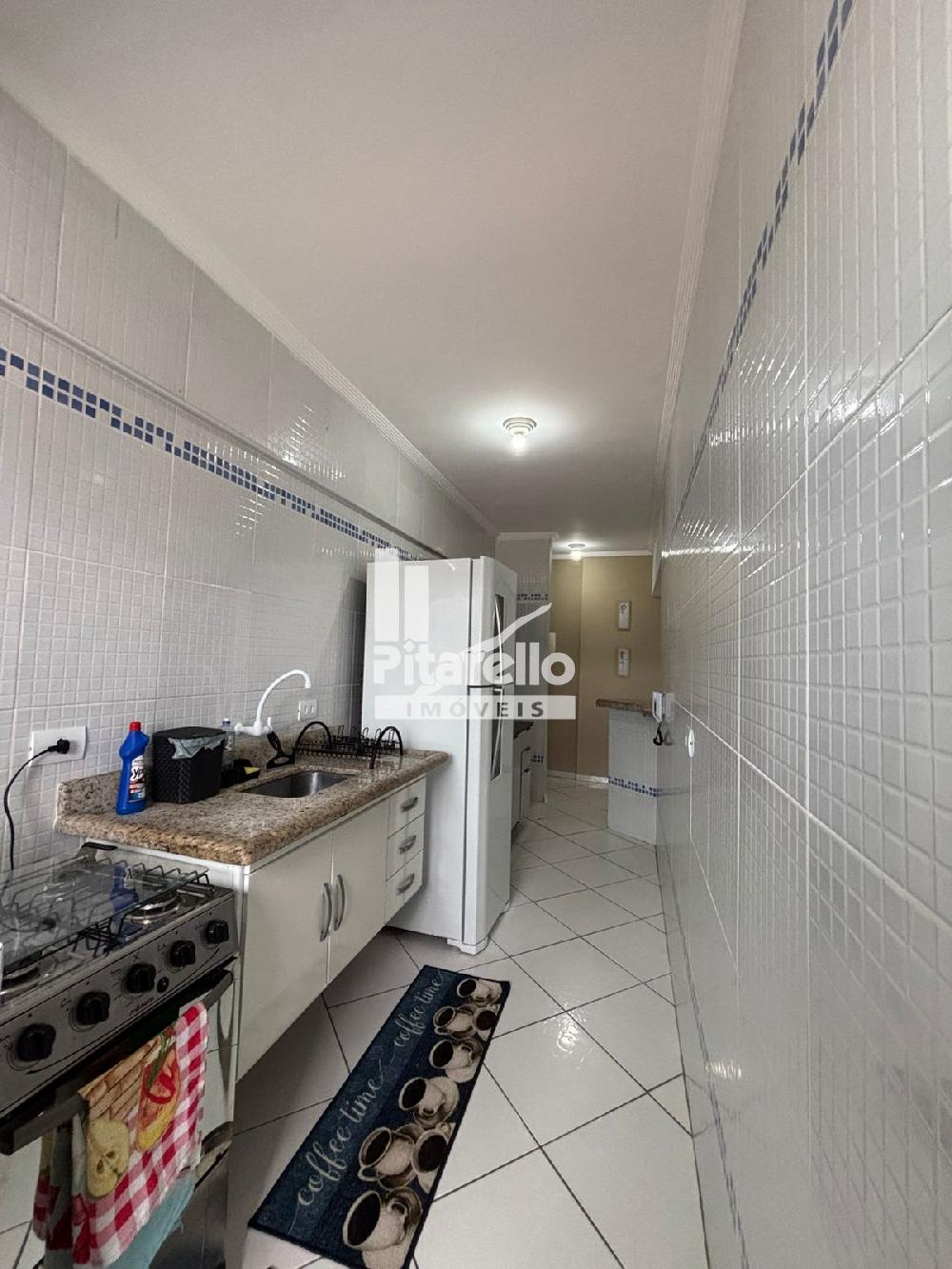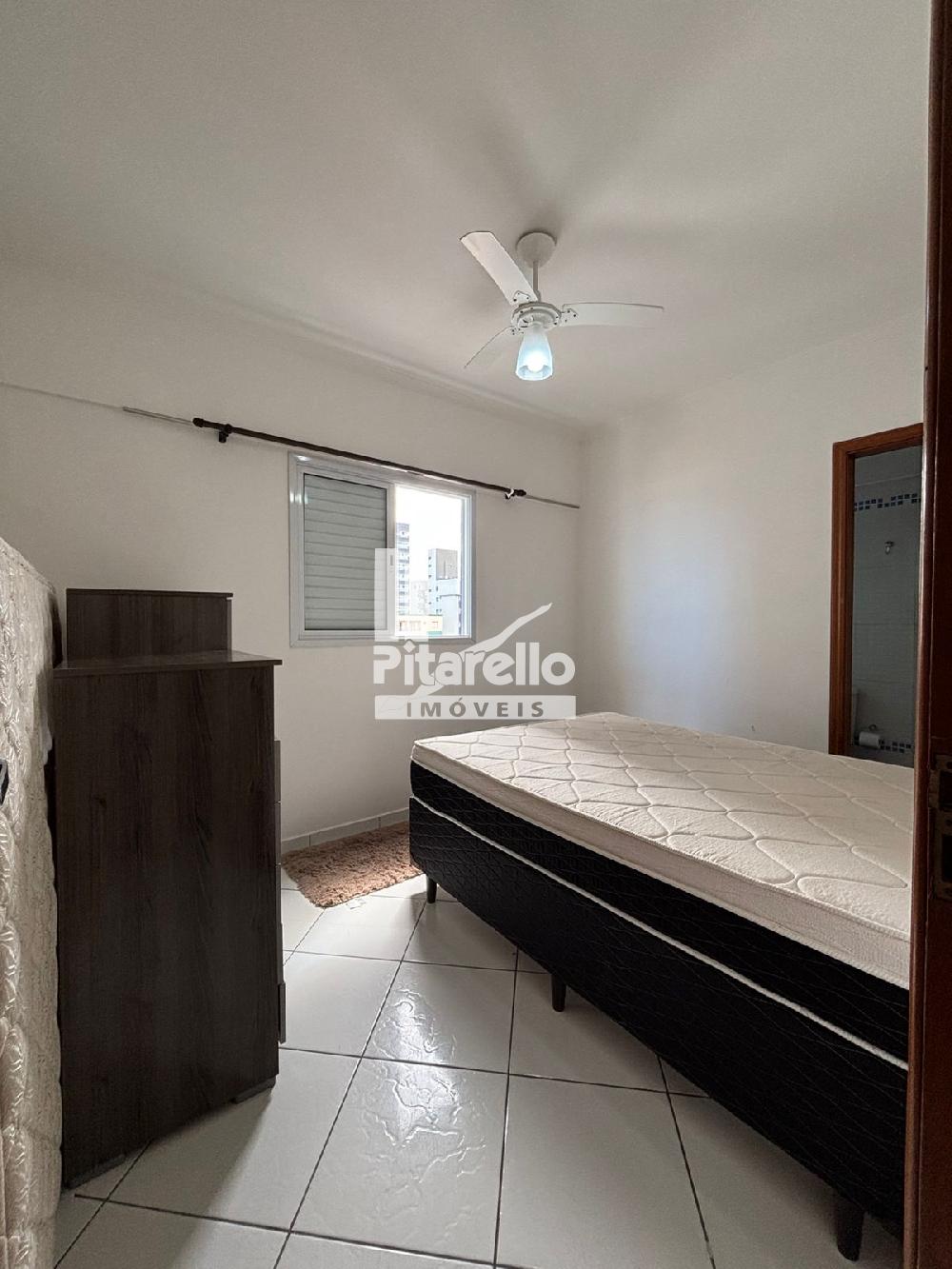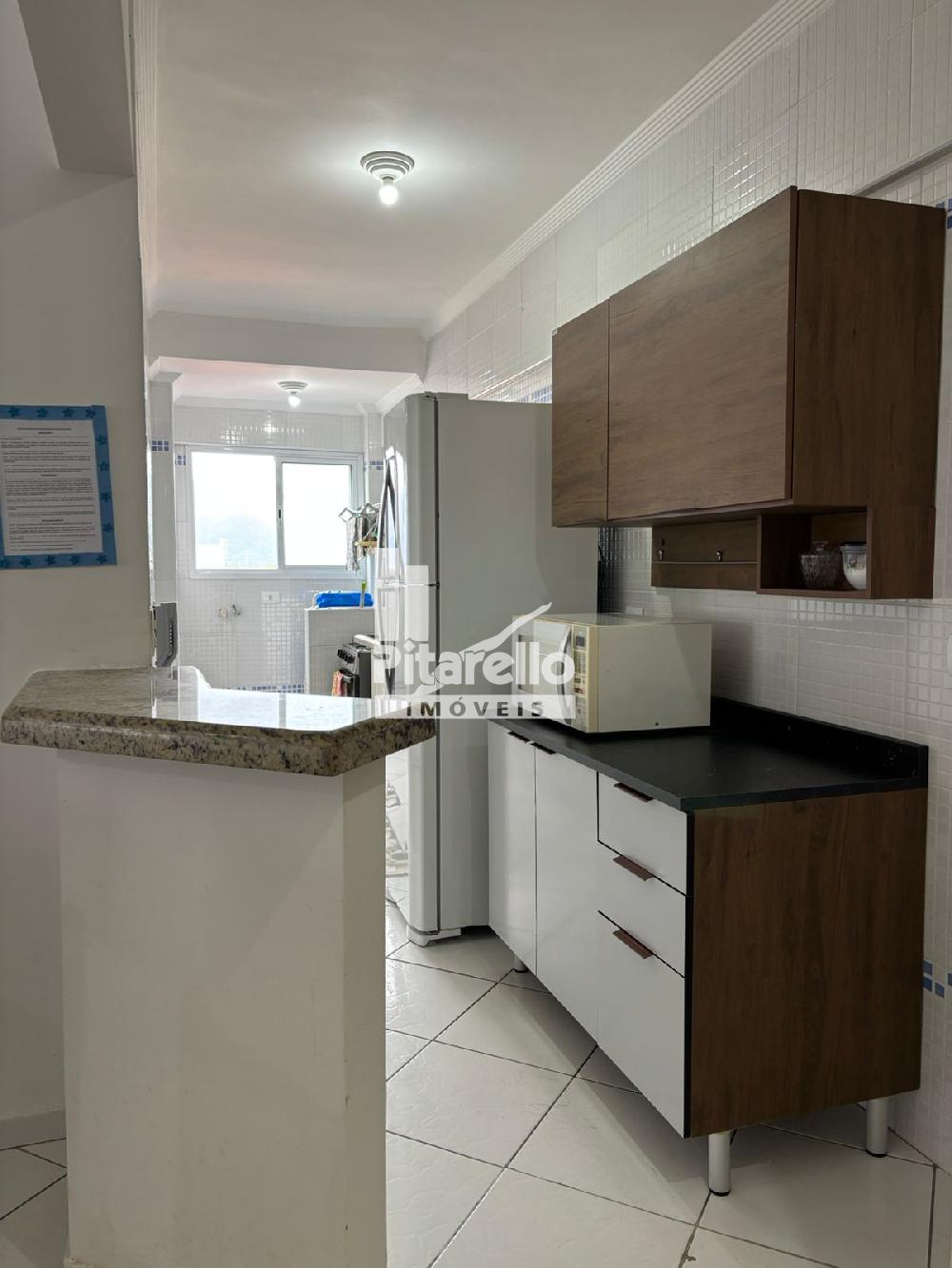 Apartamento na Praia Grande - SP na Vila Caiçara: bem localizado e confortável, com 2 quartos (um suíte), ventiladores nos tetos, cozinha, sala com TV ampla, área gourmet com vista para o mar e estacionamento.