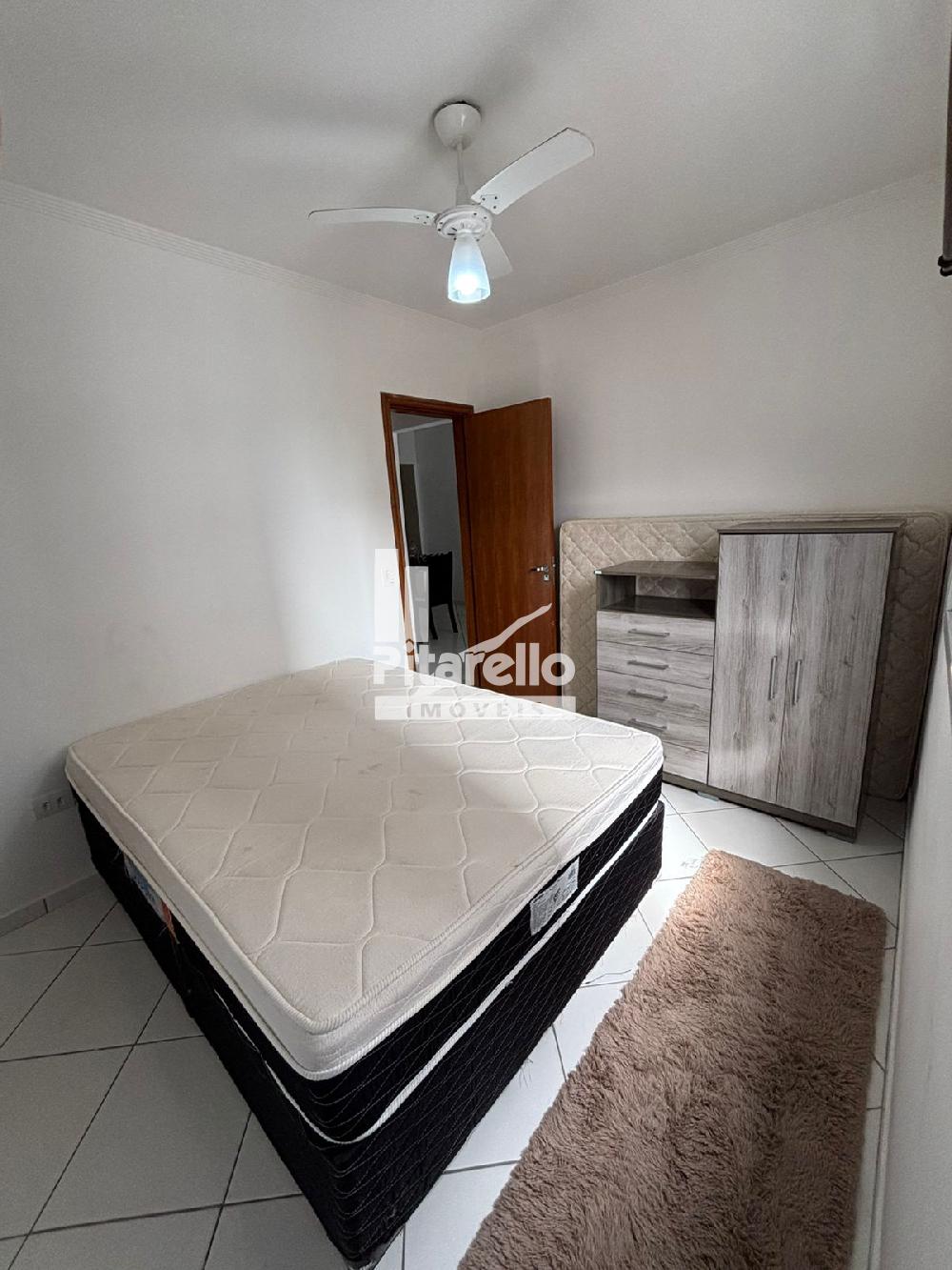 Apartamento na Praia Grande - SP na Vila Caiçara: bem localizado e confortável, com 2 quartos (um suíte), ventiladores nos tetos, cozinha, sala com TV ampla, área gourmet com vista para o mar e estacionamento.